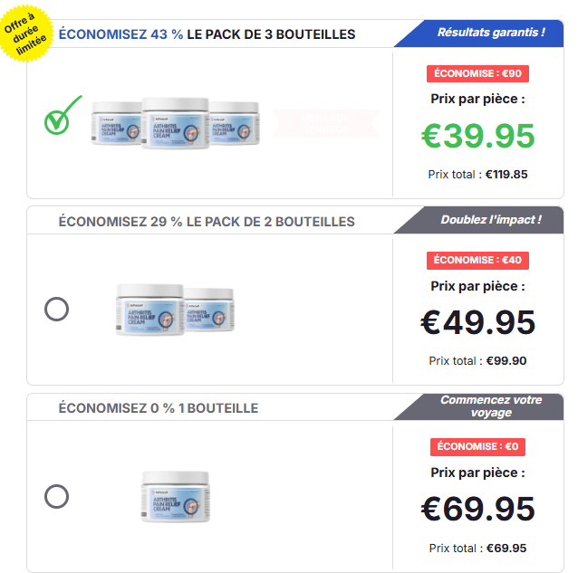 Pour garantir l'authenticité et la qualité., Arthrovit Arthritis Pain Relief Cream FR Il est préférable d'acheter ce produit directement sur le site web du fabricant. Acheter directement permet d'éviter les contrefaçons et donne souvent accès à des réductions ou des offres promotionnelles.