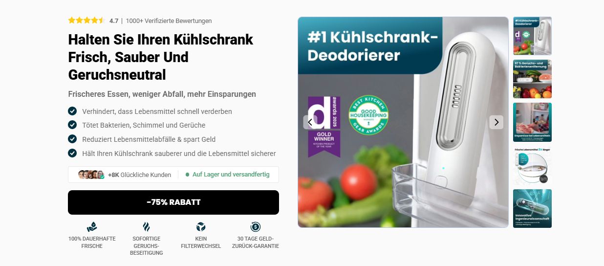 Der Ozoori Fridge Deodoriser ist hauptsächlich online erhältlich. Am sichersten ist der Kauf über den offiziellen Online-Shop oder bekannte E-Commerce-Plattformen, die nach Deutschland liefern. Dort gibt es häufig Rabatte, Garantieangebote und Kundenservice.